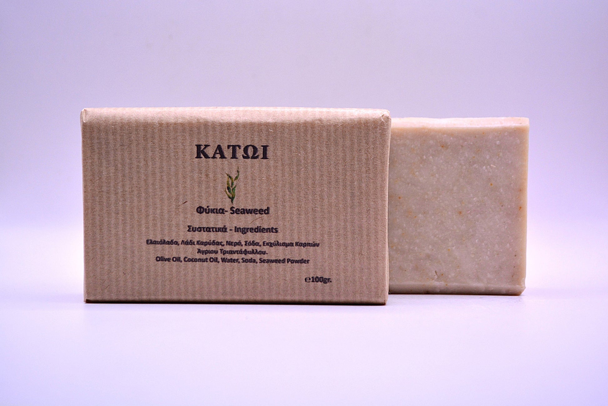 Ελαιόλαδο, Λάδι Καρύδας, Νερό, Σόδα, Πούδρα από Φύκια.